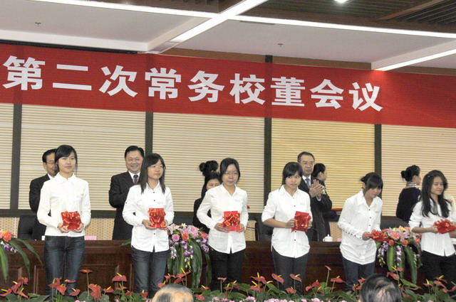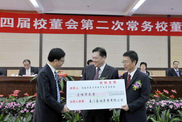 1028,集美大學(xué)校董歡聚,嘉賓云集。省長(zhǎng)、校董會(huì)主席出席第四屆校董會(huì)第二次常務(wù)校董會(huì)議并作講話。省長(zhǎng)、副省長(zhǎng)陳樺、我司董事長(zhǎng)王龍雛等為集大優(yōu)秀學(xué)生代表頒發(fā)“象嶼集團(tuán)獎(jiǎng)學(xué)金”。