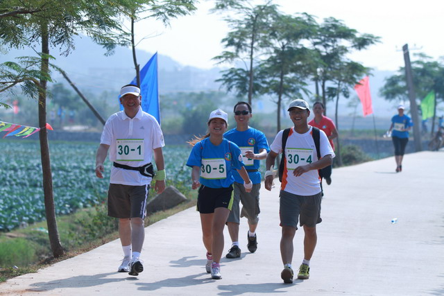 30公里,60華里,30000米,對(duì)非專業(yè)選手來(lái)說(shuō),絕對(duì)是不小的挑戰(zhàn)。臨近賽事,有同事私底懷疑——這個(gè)隊(duì)伍能否完成?殊不知,曾幾何時(shí)大家早已聞雞起舞:兩位主力一位每天清晨晨跑1小時(shí),一位每日傍晚必鍛煉5.5公里,團(tuán)隊(duì)中唯一的女選手亞梅,則充分利用了“職務(wù)之便”,在日常工作的跑單中悄悄融入了縱走的力道。