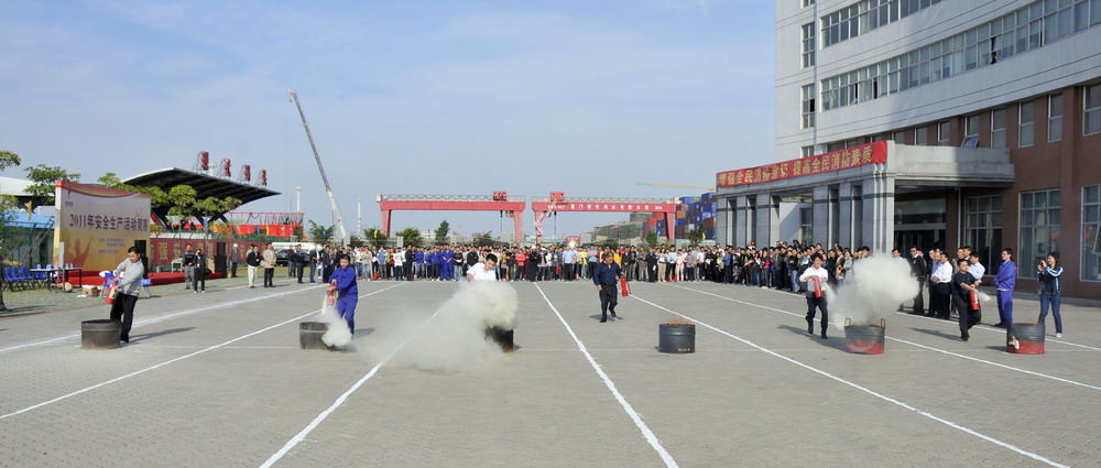 為提高企業(yè)管理人員安全生產(chǎn)知識(shí)和管理水平,提高職工安全生產(chǎn)技能和自我保護(hù)意識(shí),加強(qiáng)工會(huì)群眾監(jiān)督,提高全員安全知識(shí)水平,11月25日,集團(tuán)在現(xiàn)代碼頭行政樓前廣場(chǎng)聯(lián)合主辦了一場(chǎng)安全生產(chǎn)活動(dòng)競(jìng)賽。集團(tuán)共有16支代表隊(duì)160人參賽,各公司還組織員工現(xiàn)場(chǎng)觀摩學(xué)習(xí),現(xiàn)場(chǎng)人數(shù)逾200人。象嶼保稅區(qū)安監(jiān)局領(lǐng)導(dǎo)、廈門消防支隊(duì)寨上中隊(duì)官兵也到場(chǎng)指導(dǎo)觀摩。