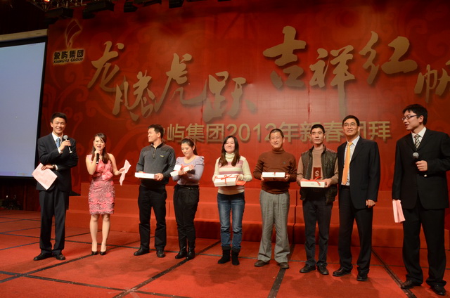 兔樂(lè)豐倉(cāng)送舊年,龍騰喜浪迎新紀(jì)。1月14日晚,年度表彰大會(huì)后,象嶼集團(tuán)2012年新春團(tuán)拜會(huì)在廈門(mén)國(guó)際會(huì)展酒店隆重舉行。象嶼集團(tuán)在廈各公司員工、異地公司代表、退休老同志等上千人歡聚一堂,喜迎龍年新春佳節(jié)。王龍雛董事長(zhǎng)率集團(tuán)黨委會(huì)、董事會(huì)、經(jīng)營(yíng)班子成員共同舉杯給全體員工拜年,向全體象嶼同仁、家屬和離退休老同志表示親切的慰問(wèn)和美好的祝愿。對(duì)員工過(guò)去一年的辛勤付出表示衷心感謝和誠(chéng)摯敬意。