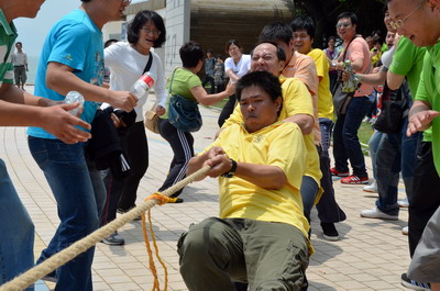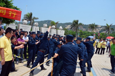 陽光明媚、海浪輕拍,大雨洗滌過的海濱分外清新。員工和官兵代表們絡(luò)繹不絕、配合默契撿拾木棧道沿途垃圾,志愿者紅色馬甲與海軍藍(lán)色制服錯落分布,構(gòu)成海灘一道獨(dú)特亮麗的風(fēng)景線。員工子女們也顧不得滿頭大汗,興沖沖地?fù)炱鸨缓K疀_上岸的雜物,用心體會著環(huán)保的理念和勞動的快樂。音樂廣場上的拔河比賽和趣味游戲?qū)F(xiàn)場氣氛推向高潮。來自集團(tuán)和海軍南方局的16支代表隊(duì)奮力拼搏,拉拉隊(duì)員激情吶喊,充分展現(xiàn)了廣大員工和現(xiàn)代軍人團(tuán)結(jié)拼搏的精神風(fēng)貌。經(jīng)過激烈角逐,象嶼碼頭、海軍南方局代表隊(duì)拔得頭籌,分獲甲、乙組冠軍。由貿(mào)易、建設(shè)、速傳、資產(chǎn)四家工會精心準(zhǔn)備的趣味游戲吸引了眾多員工及家屬參與,“龍鳳戲珠”、“呼啦行進(jìn)”、“勇闖長繩”、“向快樂出發(fā)”等環(huán)節(jié)異彩紛呈,歡呼聲、叫好聲,高潮迭起。