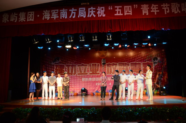 五月的花海,飛揚的青春!為慶祝中國共產(chǎn)主義青年團成立90周年,象嶼集團團委和海軍南方局團委共同舉辦 “建功立業(yè),放歌青春”慶祝“五四”青年節(jié)歌唱比賽,來自兩個單位的16名決賽選手登臺獻藝,在廈公司領(lǐng)導、員工,以及共建單位海軍南方局官兵近三百五十人到場吶喊助威。
