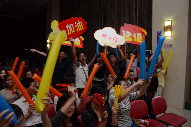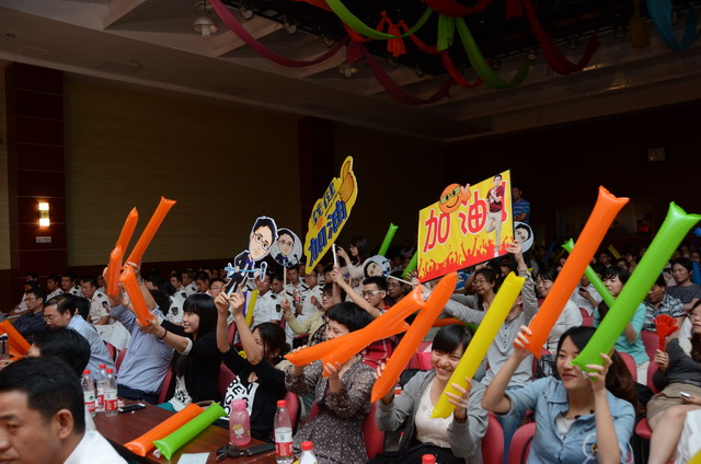 在激揚的歌曲聯(lián)唱《五月的花?!分校璩荣愓介_始。16名選手按組別輪流登場,現(xiàn)場精彩萬分。歌聲或激蕩高昂,或宛轉(zhuǎn)悠揚,或徐徐如風,或渾厚有力;表現(xiàn)力或動感十足,或動靜相宜,或幽靜宜人;曲風各異,或熱辣奔放,或溫暖抒情,或自然歡快,或懷舊悠揚。啦啦隊陣容也不容小覷,加油牌、口哨、熒光棒一應俱全,或歌唱伊始吶喊助威,或伴隨著歌聲興奮地揮舞著手臂,更有甚者激動地走到臺上為選手喝彩,臺上臺下照相印襯、融為一體。期間,軍企拉歌、擊鼓傳花等活動環(huán)節(jié)也將比賽推向一個又一個高潮。