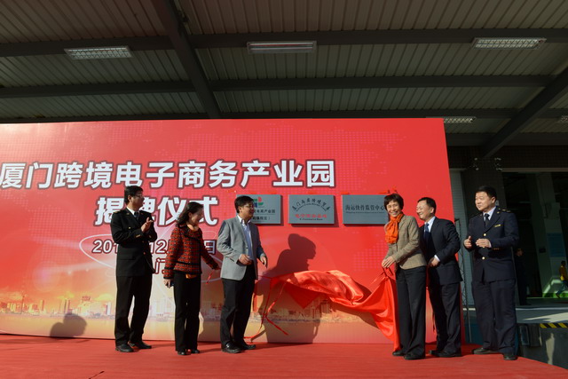 市委常委、統(tǒng)戰(zhàn)部部長黃菱,副市長張燦民為廈門跨境電子商務(wù)產(chǎn)業(yè)園揭牌,并見證了跨境電商出口第一單貨物上線測(cè)試。