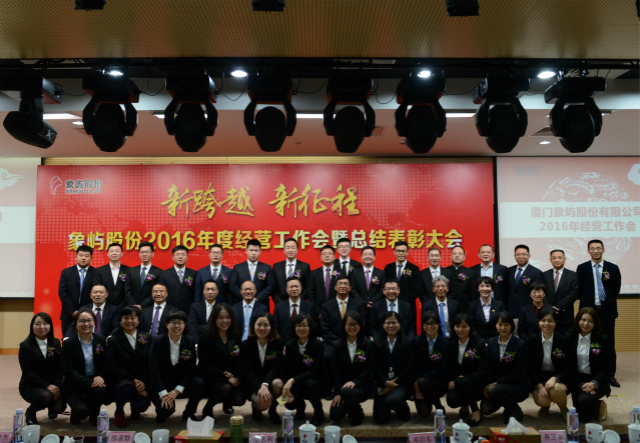 1月16日,象嶼股份2016年度經(jīng)營工作會暨年度總結(jié)表彰大會在廈門國際航運中心隆重召開。會議由股份公司鄧啟東總經(jīng)理主持,象嶼集團董事長張水利、副總裁陳方、黨委副書記邵薀默等領(lǐng)導(dǎo)蒞會,象嶼股份經(jīng)營班子、旗下各投資企業(yè)高管及員工代表130余人參加了會議。