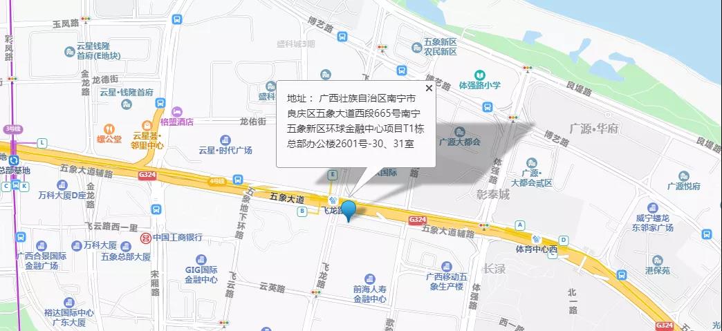 公司地址|廣西壯族自治區(qū)南寧市良慶區(qū)五象大道西段665號(hào)南寧五象新區(qū)環(huán)球金融中心項(xiàng)目T1棟總部辦公樓2601號(hào)-30、31室