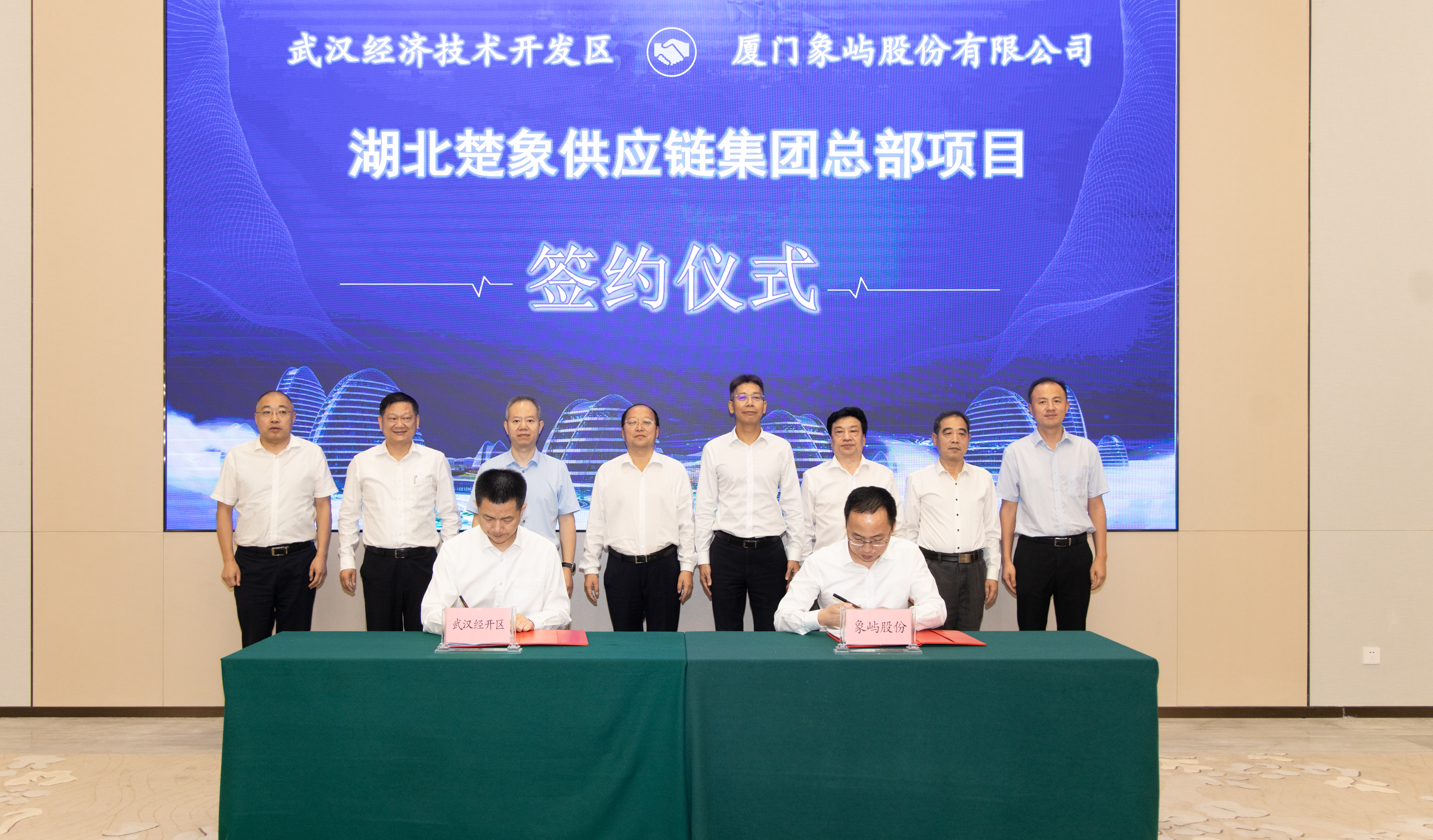 9月28日下午,廈門象嶼股份有限公司與武漢經(jīng)濟(jì)技術(shù)開發(fā)區(qū)簽署項(xiàng)目合作協(xié)議,湖北楚象供應(yīng)鏈集團(tuán)總部項(xiàng)目正式落戶武漢經(jīng)開區(qū)。在象嶼股份黨委書記、總經(jīng)理齊衛(wèi)東,市委常委、武漢經(jīng)開區(qū)工委書記劉子清,湖北交通投資集團(tuán)有限公司黨委書記、董事長龍傳華,黨委副書記、總經(jīng)理盧軍等共同見證下,象嶼股份黨委委員、副總經(jīng)理范承揚(yáng)與武漢經(jīng)開區(qū)工委副書記、管委會(huì)主任唐超分別代表雙方簽約。