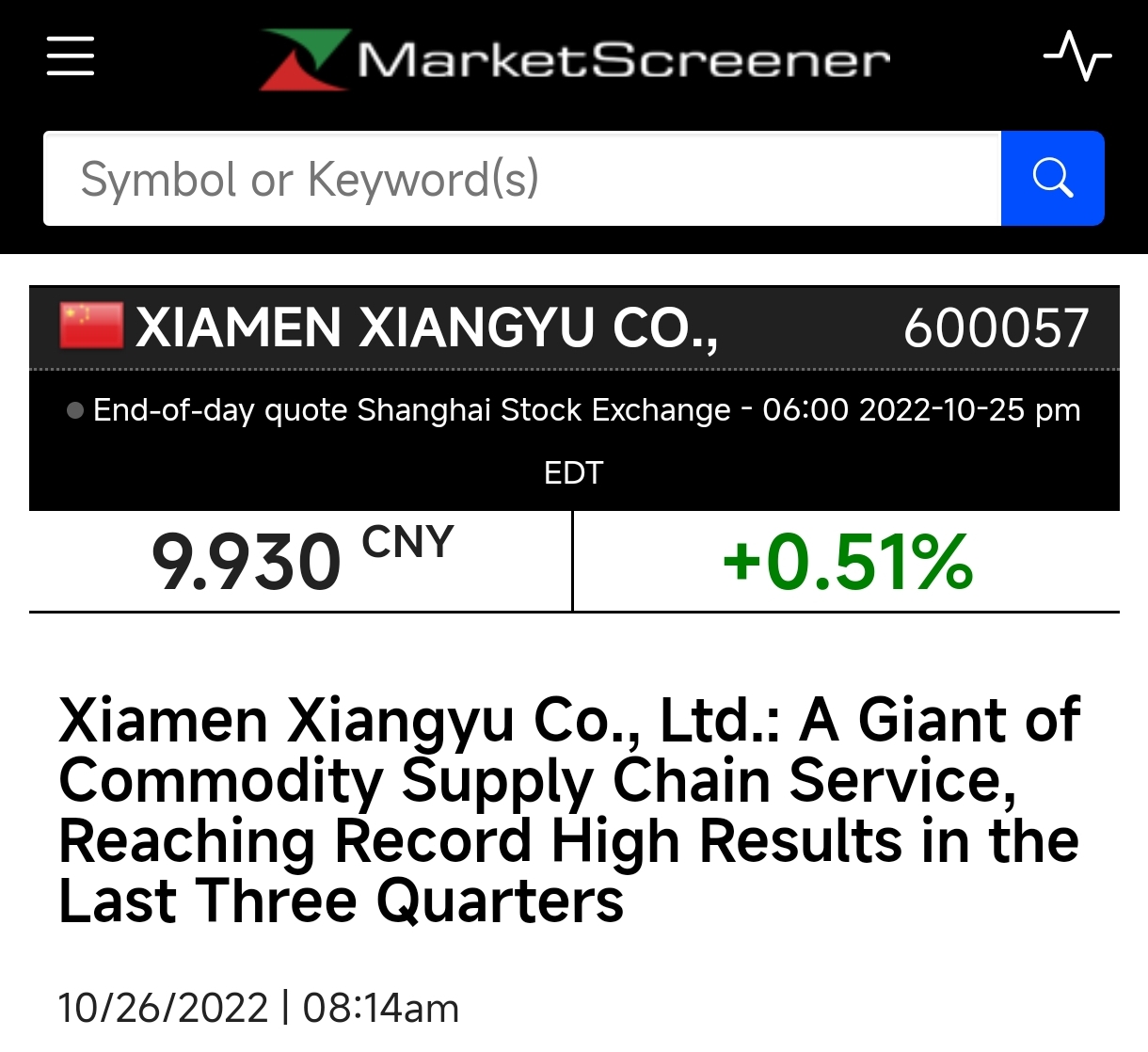 10月26日晚間,廈門象嶼(600057.SH)發(fā)布第三季度財報,2022年前三季度,公司實現(xiàn)營業(yè)收入3,918億元,同比增長13.74%;歸母凈利潤21.73億元,同比增長31.23%;凈資產收益率15.26%,同比增加1.91個百分點。公司營業(yè)收入、歸母凈利潤均創(chuàng)同期歷史新高,經(jīng)營效益持續(xù)提升。